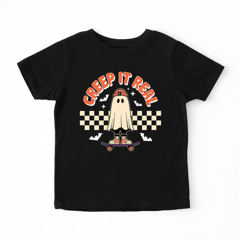 Let your little ghoul roll through spooky season with style in our Creep It Real Baby Bodysuit, Skater Ghost Baby Shirt, and Halloween Toddler Sweatshirt! This fun retro design features a ghost on a skateboard and is perfect for boys who like their Halloween with a cool twist.
