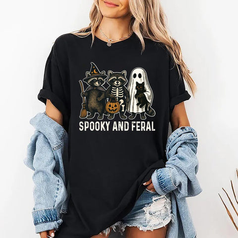 Spooky and Feral Raccoon Shirt, Retro Halloween Raccoon Sweatshirt, Creepy Ghost Hoodie, Feral Girl Long Sleeve Shirt, Halloween Mama Tee