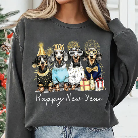 Celebrate the New Year with our Happy New Year Dachshund Dog Shirt! Featuring adorable puppy art, itβs the perfect festive tee for dog lovers welcoming 2026.