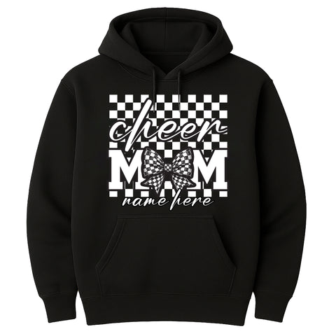 Cheer in style with our Checkered Coquette Cheer Mom Shirt! Designed with a trendy checkered bow and personalized name option, this shirt is perfect for cheer competitions, football season, and family spirit wear.