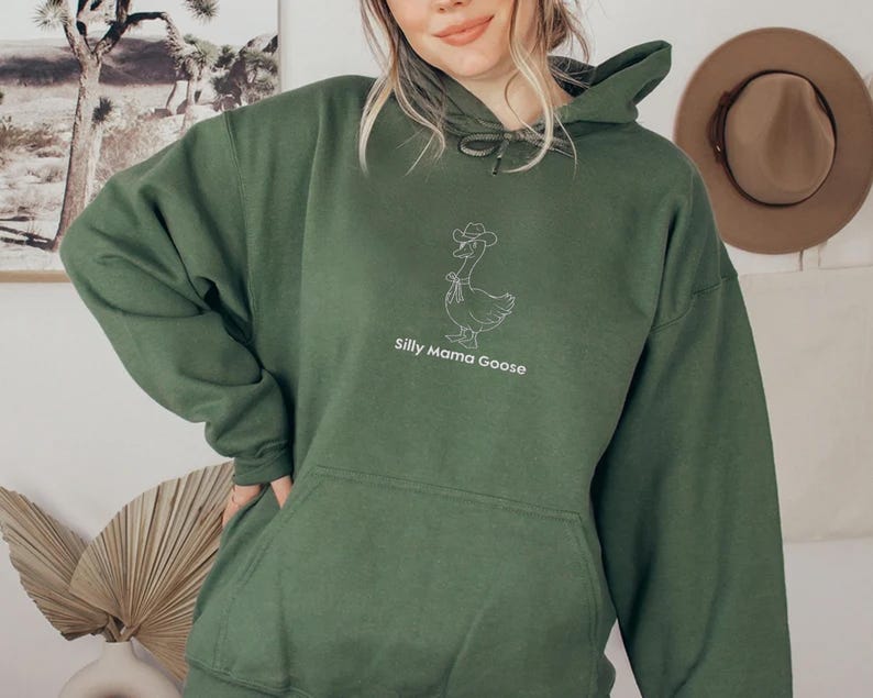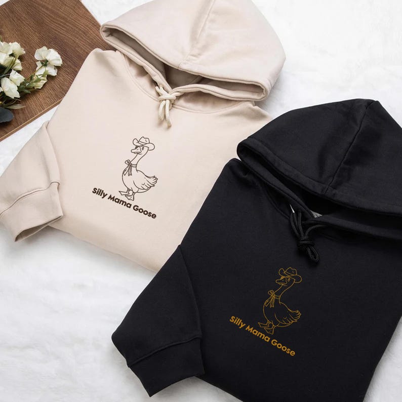 Embroidered Silly Mama Goose Hoodie, Coquette Bow Hoodie, Birthday Party Hoodie, Family Goose Hoodie, 1st Birthday Gift