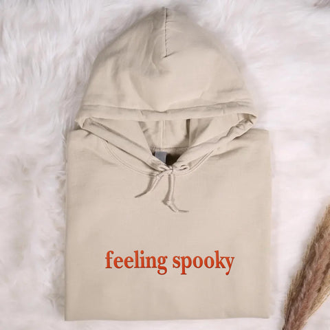 Salem Witch Embroidered Hoodie, Feeling Spooky Sweatshirt, Cute Fall Shirt, Spooky Season Long Sleeve Shirt, Minimal Embroidery Gift for Her