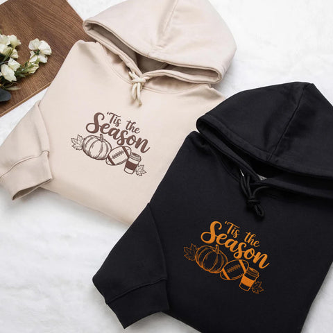 Tis the Season Embroidered Hoodie, Pumpkin Spice Latte Sweatshirt, Fall Shirt, Touchdown Long Sleeve Shirt, Thanksgiving Gift Idea