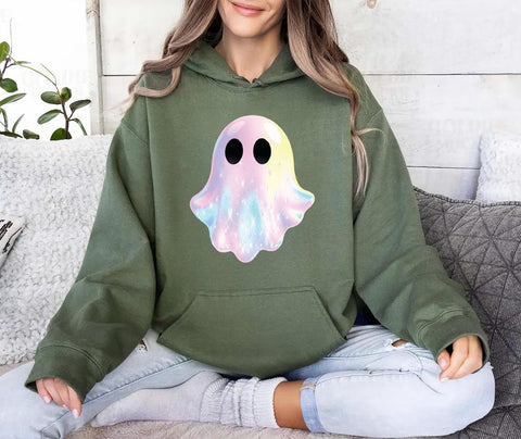 Shimmering Ghost Hoodie, Iridescent-Look Ghost Crewneck Hoodie, Cute Glitter Ghost Design, Halloween, Unisex Spooky Season Shirt, Gifts for Her