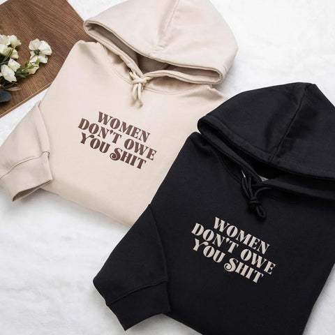 Women Don’t Owe You Shit Embroidered Sweatshirt, Feminist Hoodie, Pro Choice Shirt, Roe v. Wade Long Sleeve Shirt, Equal Rights Gift