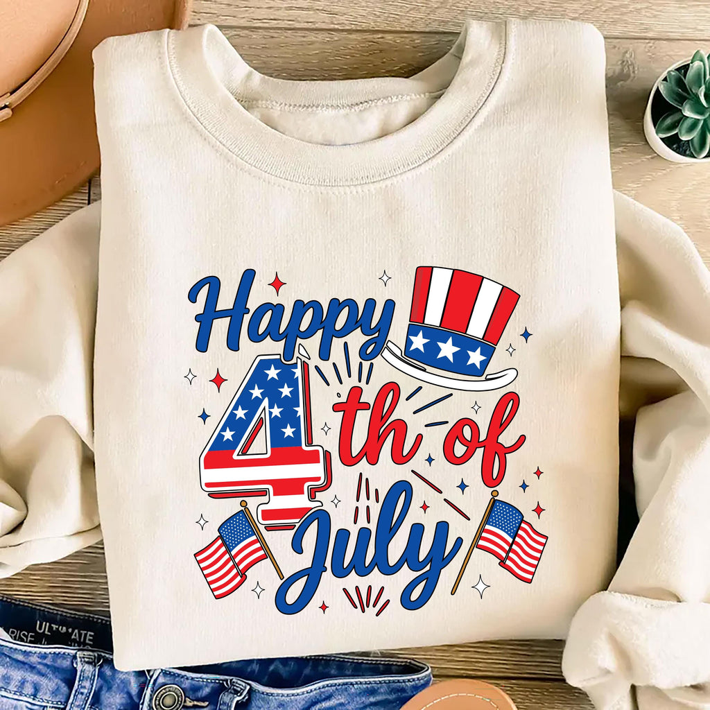 Happy 4th of July Sweatshirt, Patriotic American Flag Sweatshirt, USA Independence Day Sweatshirt, Red White Blue Celebration Sweatshirt Gift