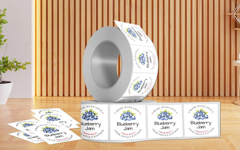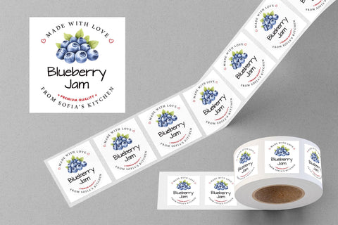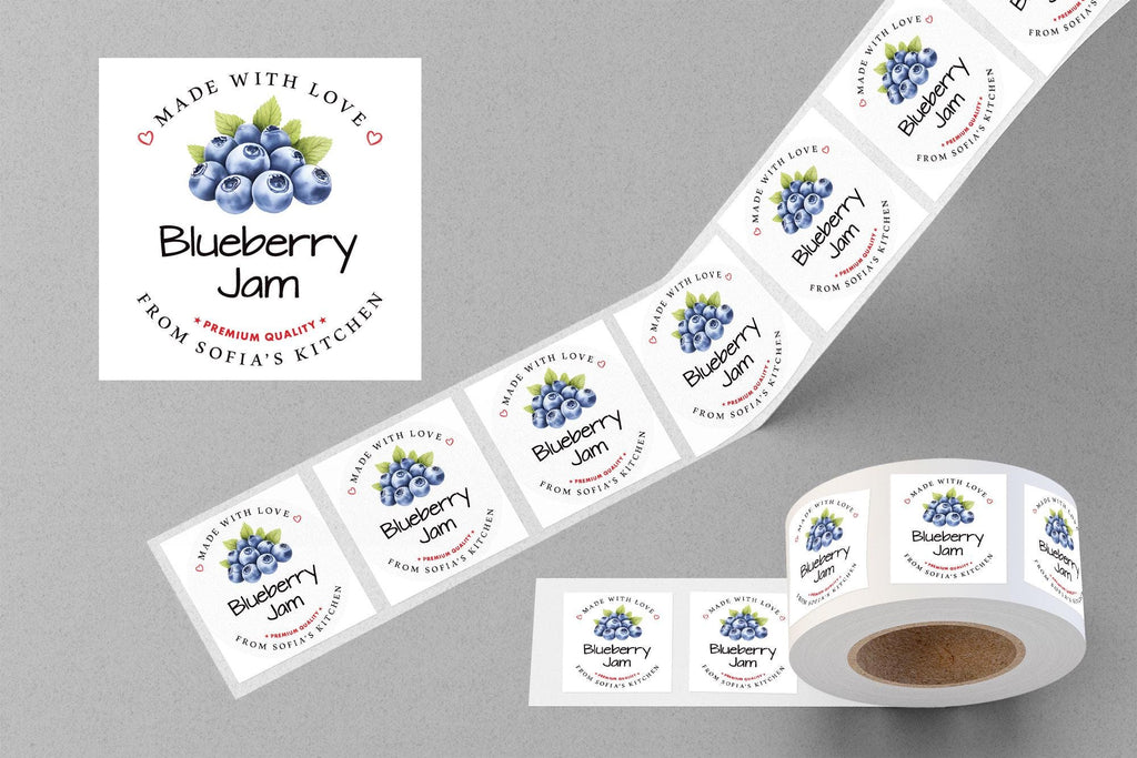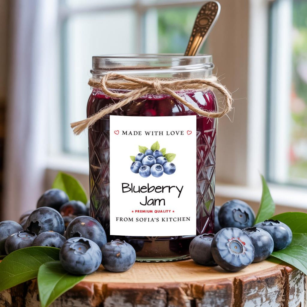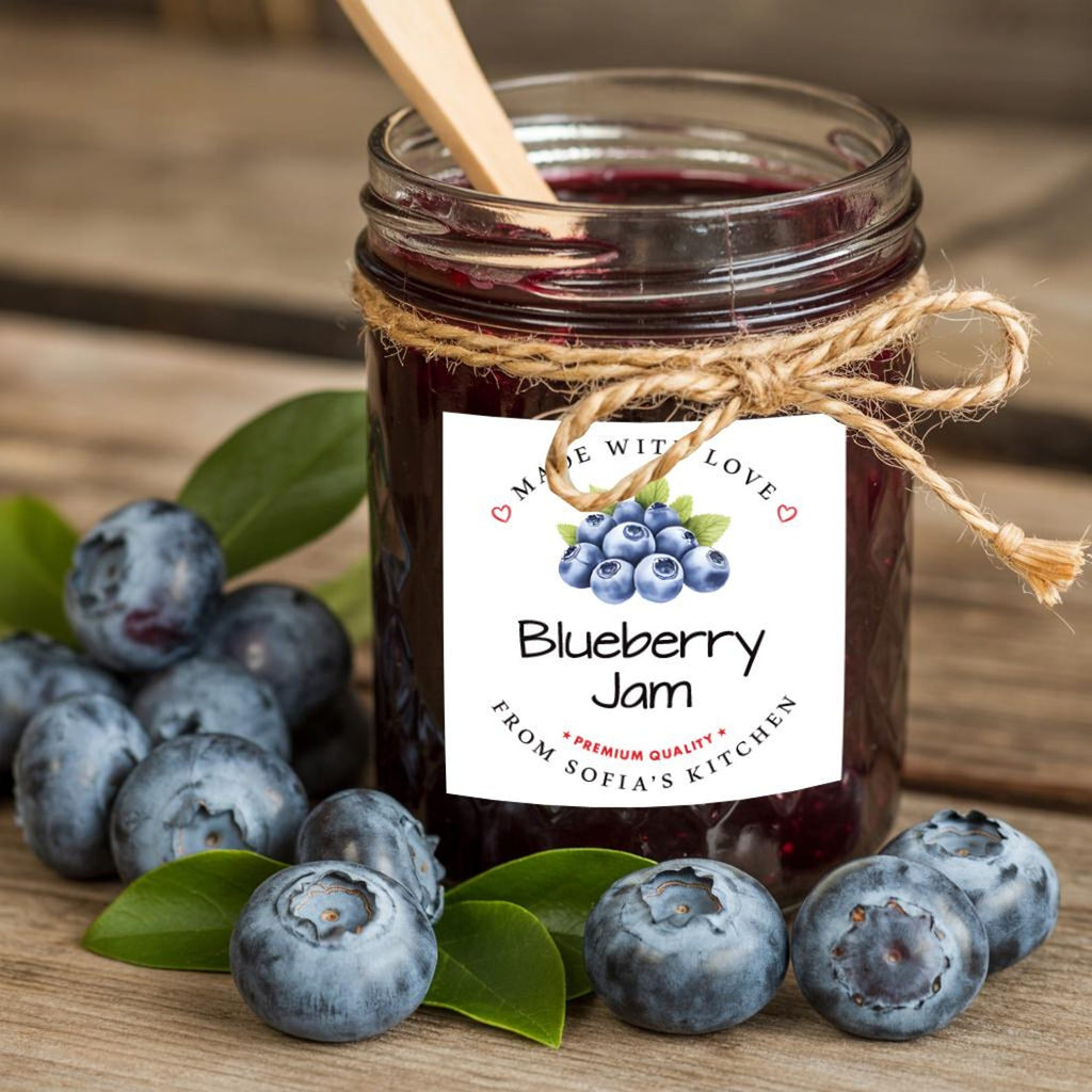 Every order is made to order with care, giving your blueberry preserves a polished and professional look that reflects their homemade charm.