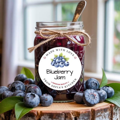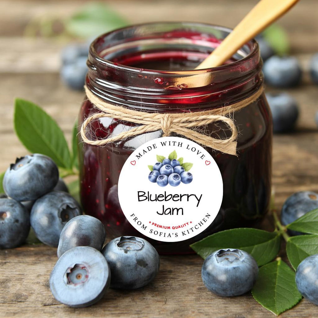 Crafted from high-quality, waterproof, and sun-resistant materials, these labels are made to last for both indoor and outdoor use. Each sticker can be customized with your business name, logo, or personal message, helping your blueberry jam jars stand out at markets, events, or as thoughtful gifts.