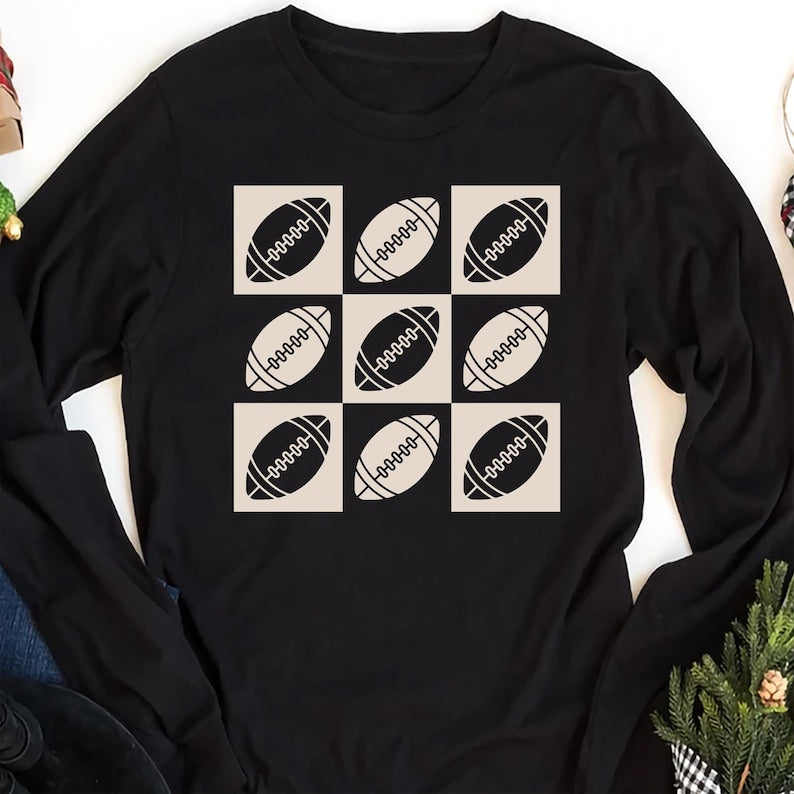 Checkered Football Long Sleeve Shirt, Retro Game Day Football Mama Tee, Flag Football Player Shirt, Fall Crewneck Unisex Sports Shirt, Gifts for Her