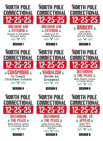 Get festive laughs with our North Pole Correctional Shirt! Featuring playful quotes and a holiday jailhouse theme, this funny Christmas shirt is perfect for family matching outfits, holiday parties, or group photos.