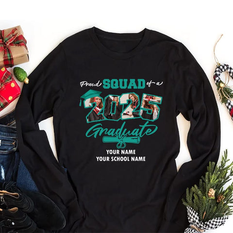 Custom Proud Family Graduation Long Sleeve Shirt, Group 2025 Grad Shirt, Senior 25 Long Sleeve Shirt, Graduation Squad Shirt, High School Graduate Gift.