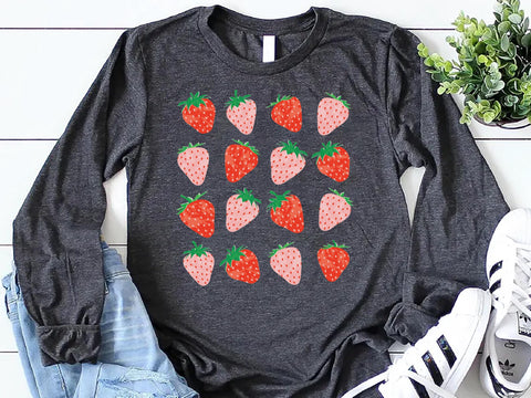 Cute Strawberry Long Sleeve Shirt, Summer Strawberry Shirt, Cottagecore Berries Long Sleeve Tee, Strawberry Aesthetic Shirt, Botanical Garden Gift