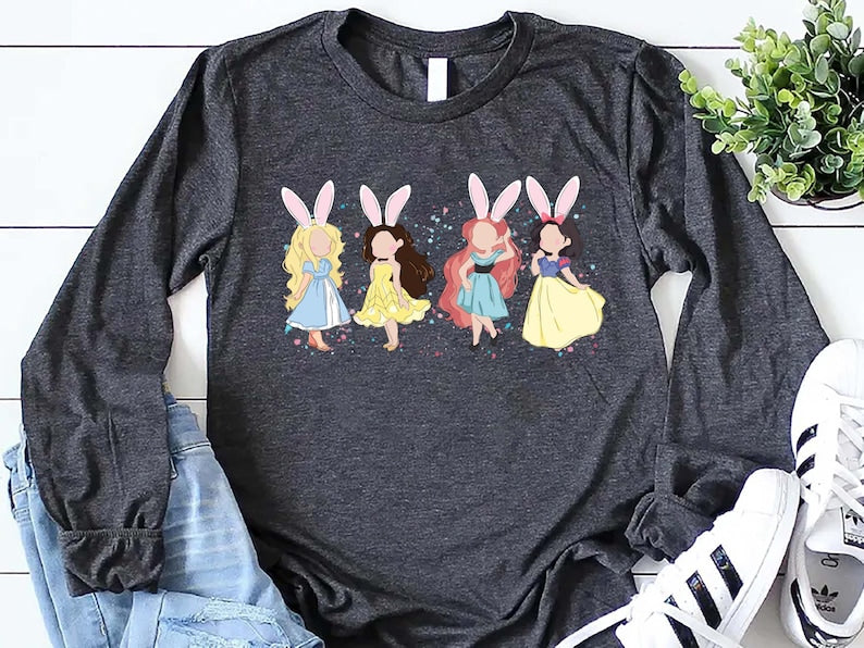 Easter Princess Long Sleeve Shirt, Watercolor Easter Bunny Shirt, Princess Lover Long Sleeve T-Shirt, Happy Easter Day Shirt, Easter Eggs Gift: 100% cotton, high-quality knitted fabric, soft touch with a classic fit that lies flat. Keep cool and dry with our Easter Princess Shirt. Our quick-dry fabric helps evaporate moisture and naturally regulate body temperature. It can be worn alone or as a layering piece adding depth to your wardrobe. Crafted with care, each piece is made to order, ensuring a unique, personalized touch just for you