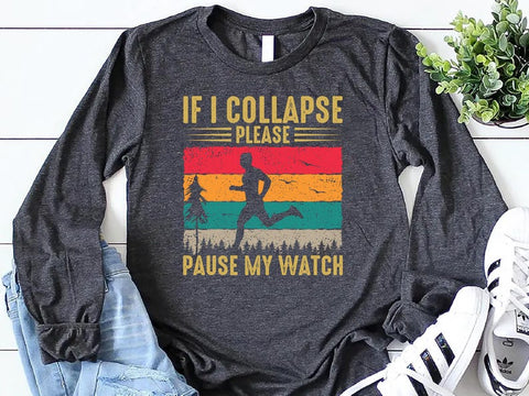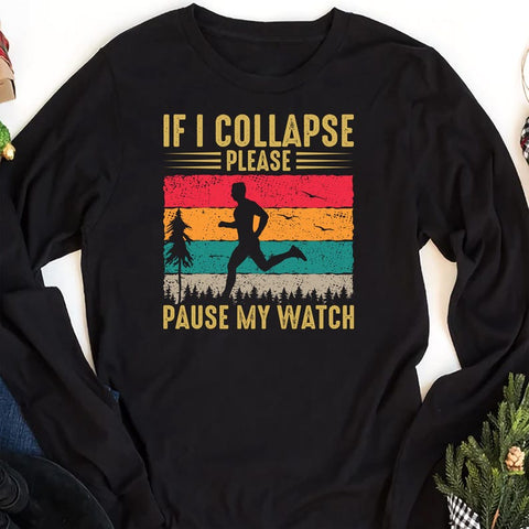 If I Collapse Please Pause My Watch Long Sleeve Shirt, Marathon Running Shirt, Funny Runner Long Sleeve T-Shirt, Love Running Shirt, Running Gift