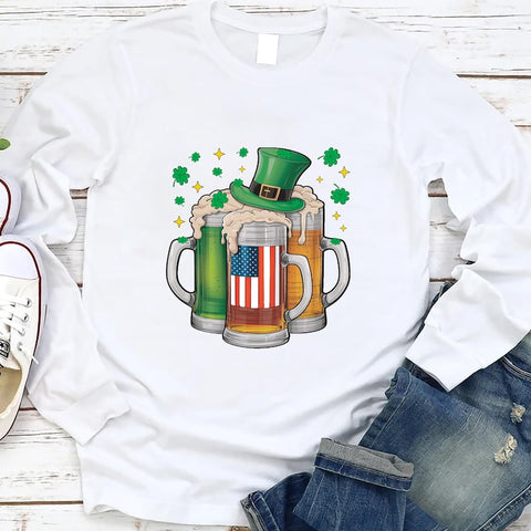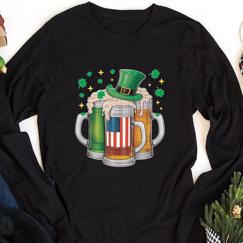 Irish Beer Long Sleeve Shirt, St. Patrick's Day Shirt, Ireland Drinking Party Long Sleeve Tee, St. Patrick's Day Shirt, Irish Beer Party Gift: 100% cotton, high-quality knitted fabric, soft touch with a classic fit that lies flat. Keep cool and dry with our Irish Beer Shirt. Our quick-dry fabric helps evaporate moisture and naturally regulate body temperature. It can be worn alone or as a layering piece adding depth to your wardrobe. Crafted with care, each piece is made to order, ensuring a unique, personalized touch just for you