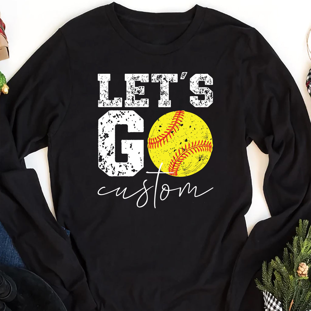 Cheer on your player with our Let’s Go Softball Shirt! Personalize it with your team name for the perfect spirit wear. Ideal for moms, families, and fans, this softball tee makes game day even more exciting.