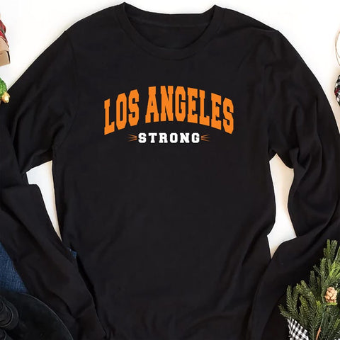 Los Angeles Strong Long Sleeve Shirt, Forest Fire Awareness Shirt, Support Group Long Sleeve T-Shirt, Strong Matching Shirt, LA Graphic Forest Tee: 100% cotton, high-quality knitted fabric, soft touch with a classic fit that lies flat. Keep cool and dry with our Los Angeles Strong Shirt. Our quick-dry fabric helps evaporate moisture and naturally regulate body temperature. It can be worn alone or as a layering piece adding depth to your wardrobe. Crafted with care, each piece is made to order, ensuring a unique, personalized touch just for you