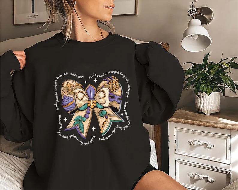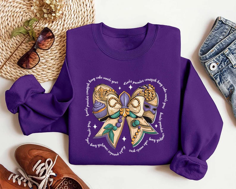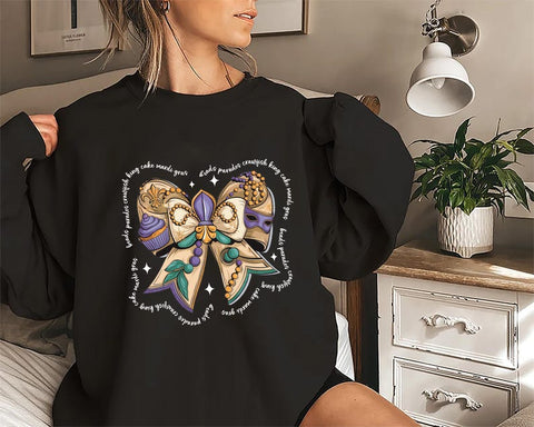 Coquette Mardi Gras Sweatshirt, Carnival Sweatshirt, Women’s Mardi Gras Sweatshirt, New Orleans Cruise Sweatshirt, Fleur De Lis Fat Tuesday Gift