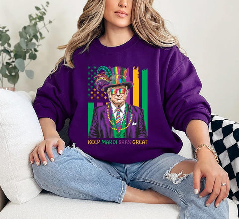 Keep Mardi Gras Great Sweatshirt, Funny Trump Mardi Gras Sweatshirt, Carnival Sweatshirt, Mardi Gras Party Sweatshirt, New Orleans Flag Gift