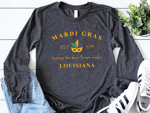 Mardi Gras Long Sleeve Shirt, Louisiana Mardi Gras Shirt, Mardi Gras Celebrations Long Sleeve Tee, Louisiana State Shirt, Mardi Gras Party Gift
