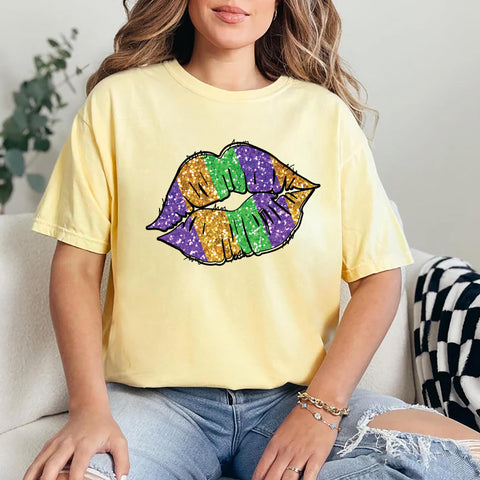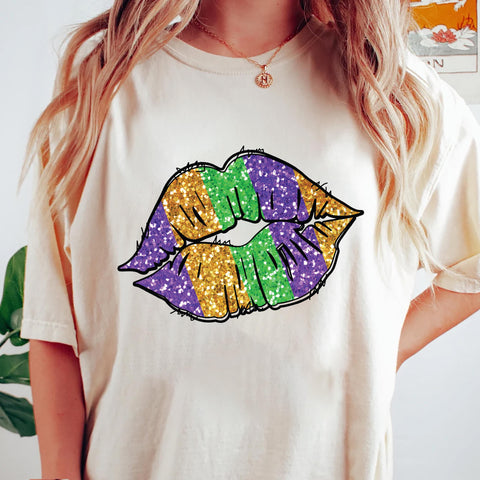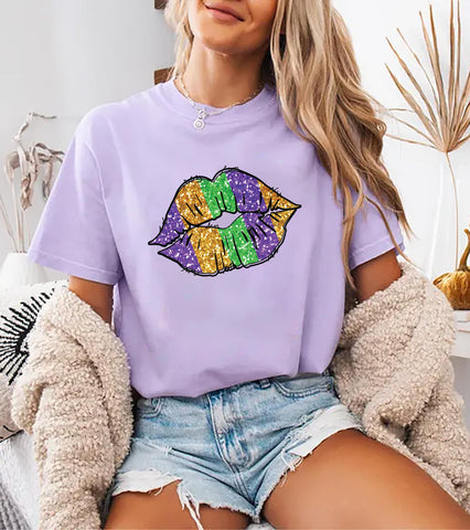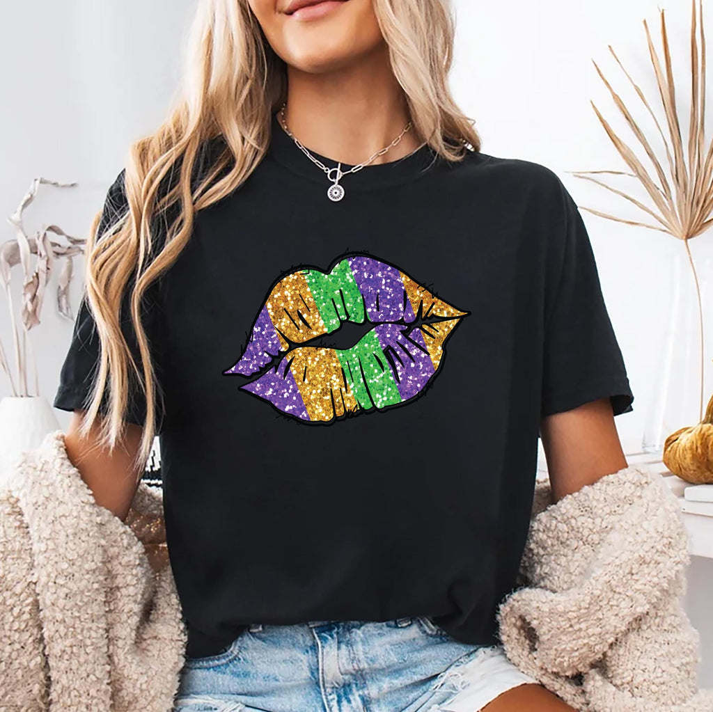 Celebrate Mardi Gras in bold color with this fun Mardi Gras Lips and Fleur De Lis shirt — perfect for Fat Tuesday outfits, parades, and Louisiana carnival celebrations.