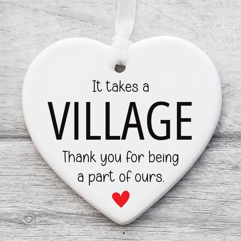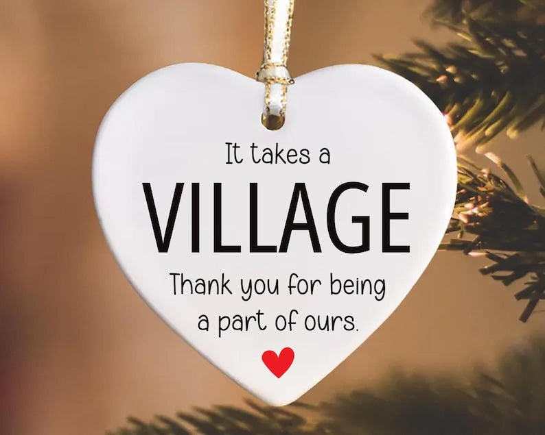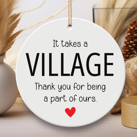 Crafted from premium ceramic, this ornament serves as a lasting token of appreciation, perfect for displaying in homes, classrooms, or workspaces. Whether you're searching for a Thank You Gift or a way to celebrate the incredible people in your "village," this keepsake is the perfect choice.