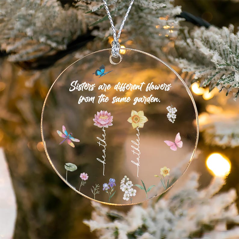 Sisters Are Different Flowers From The Same Garden Ornament, Custom Wildflowers Sister Acrylic Ornament, Soul Sister Gift, Birth Flower Gift