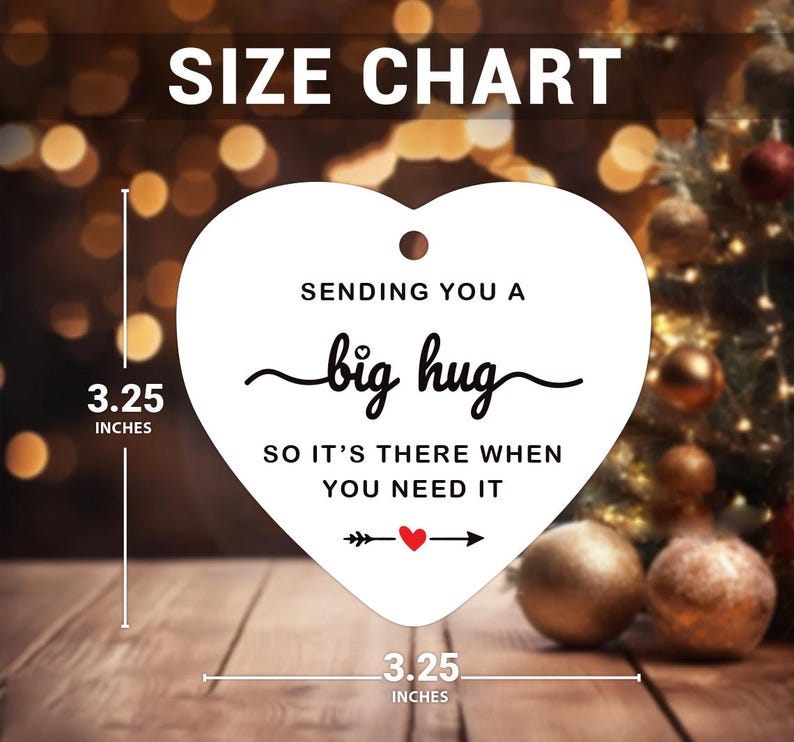 Show your love and care with our Thinking of You Ornament. This beautifully designed Ceramic Keepsake carries the heartfelt message: "Sending You a Big Hug So It's There When You Need It." Perfect for long-distance loved ones, friends, or anyone who could use a comforting reminder, this ornament is a thoughtful and meaningful gift.
