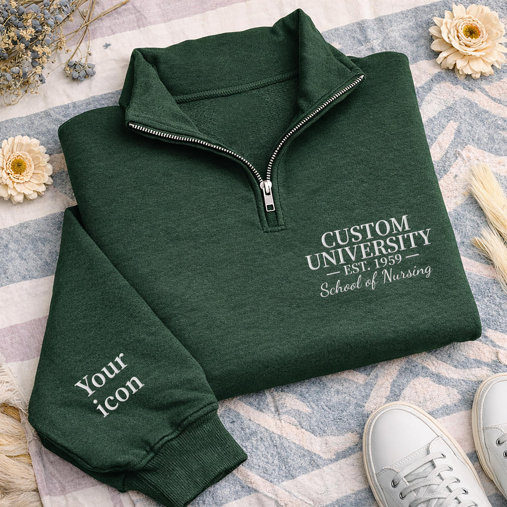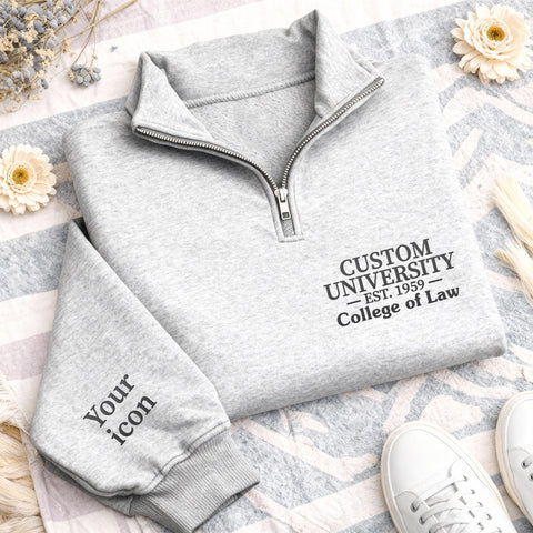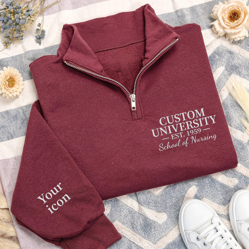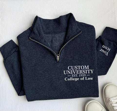 Custom College Quarter Zip Sweatshirt, Embroidered School Degree Pullover, Alumni Graduation Gift, Personalized University Zip
