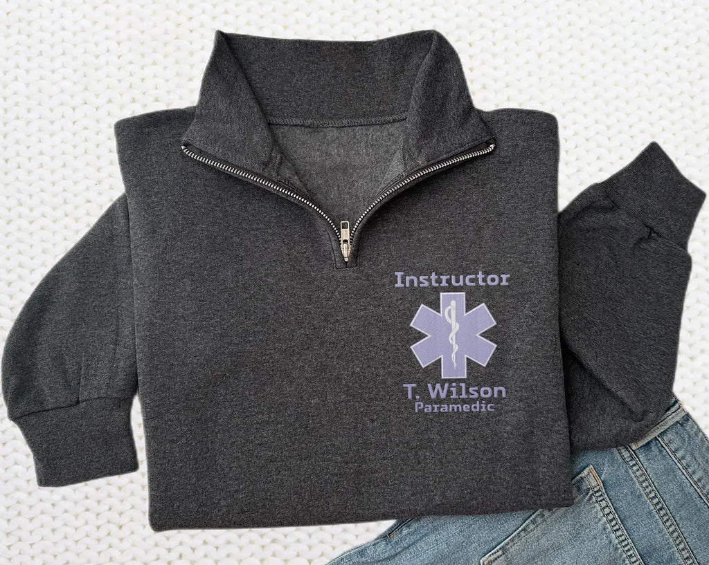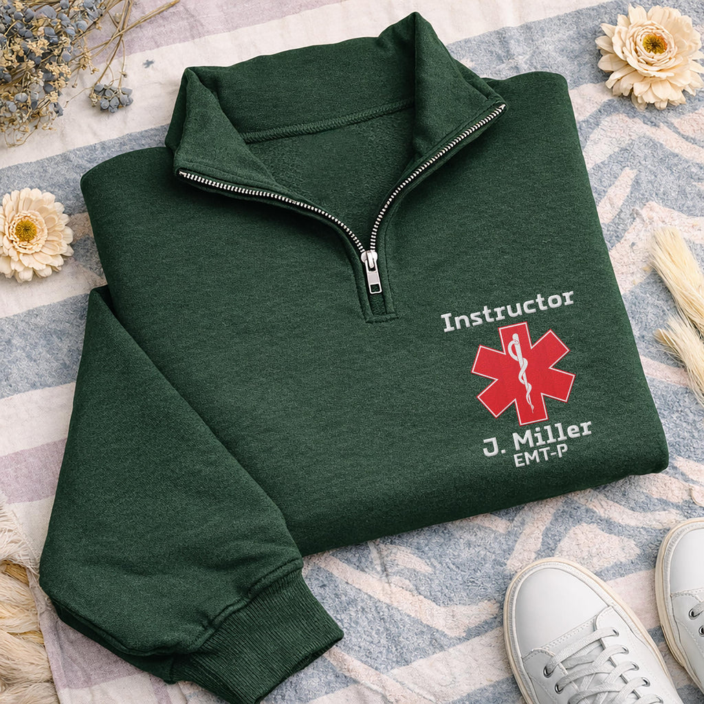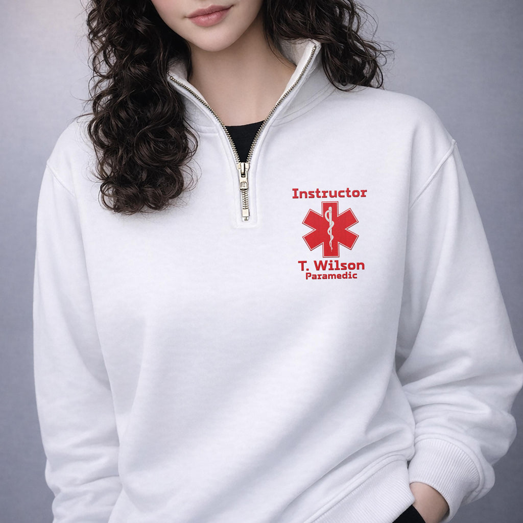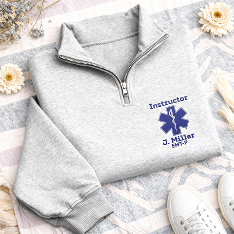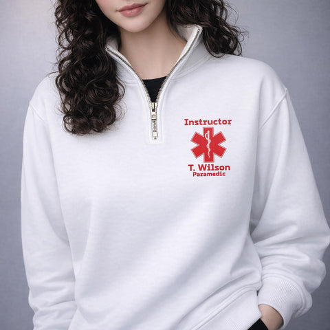 EMT EMS Quarter Zip Sweatshirt, Rescue Emergency Response Pullover, Star of Life Work Zip, Firefighter Medic Gift, First Responder