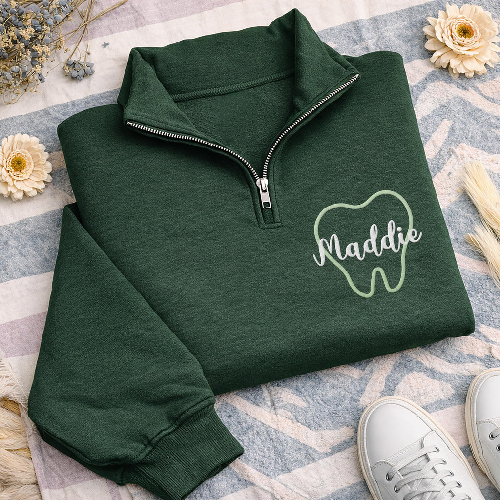 Show your dental pride in comfort and style with this Personalized Dental Quarter Zip Sweatshirt. Designed for dental hygienists, assistants, and office teams, this custom pullover adds a professional yet cozy touch to your everyday clinic wardrobe. It’s a perfect layer for busy workdays, patient appointments, or relaxing after a long shift.