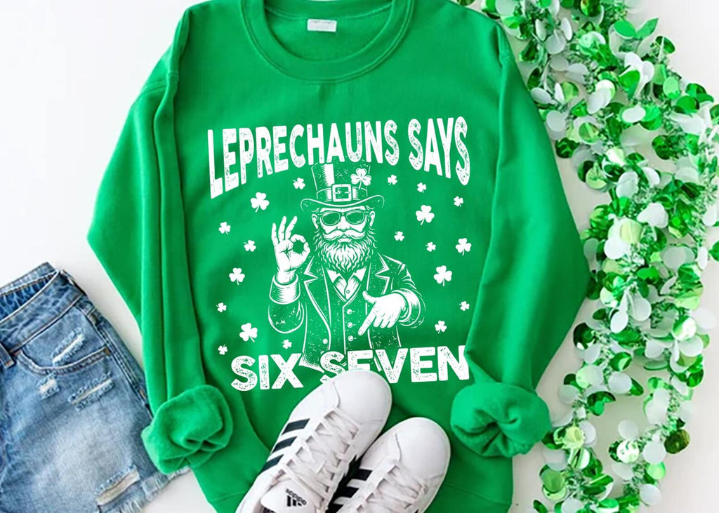 Leprechauns Says Six Seven Sweatshirt, 67 Meme Shirt, Funny St Patrick Sweatshirt