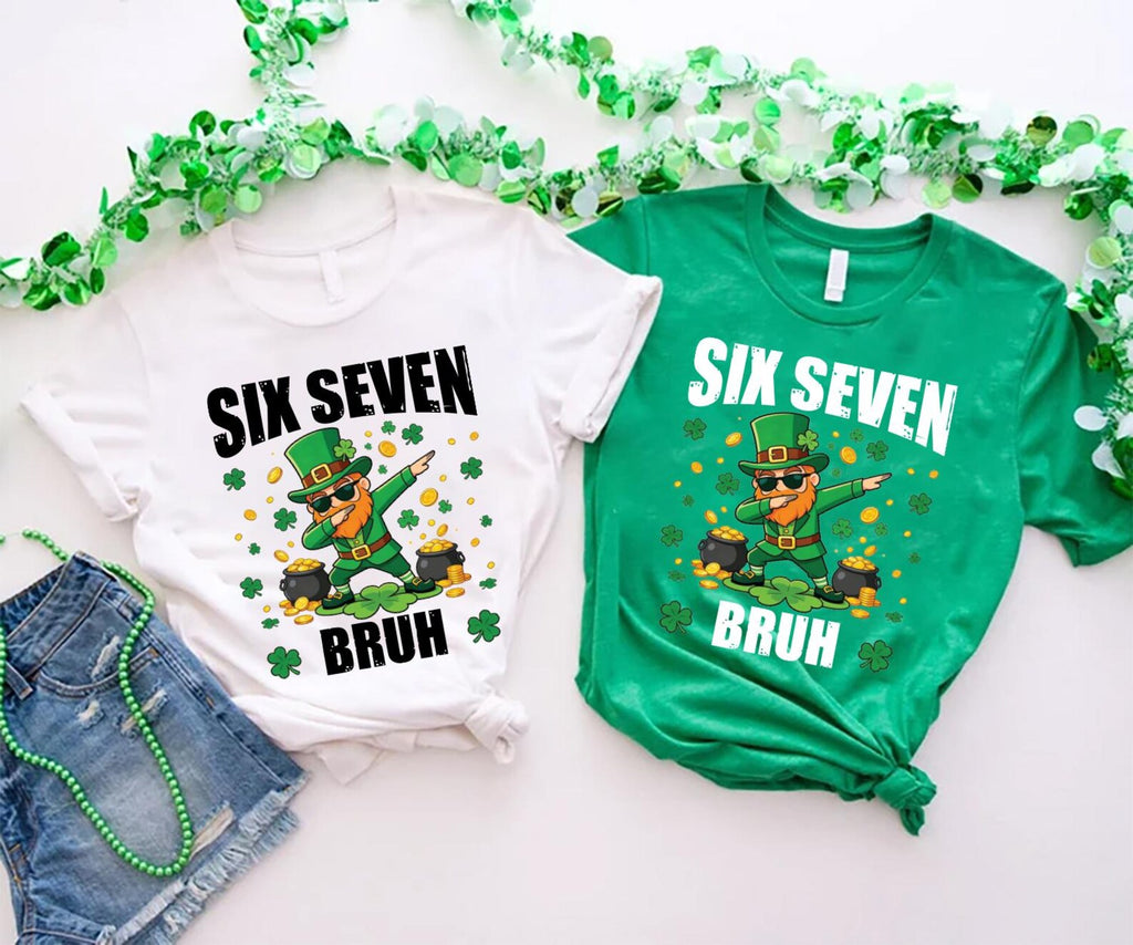 Turn heads this St. Patrick’s Day with the viral “Six Seven Bruh” meme shirt — a perfect mix of Irish luck and internet humor.