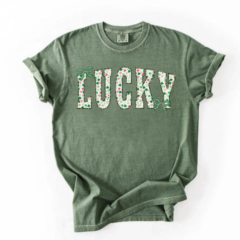 Celebrate in style with this Coquette Lucky St. Patrick’s Day shirt — featuring a preppy pink shamrock and retro lucky vibes.