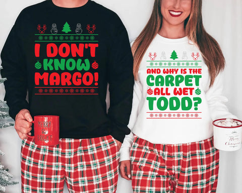 Christmas Vacation Todd And Margo Sweatshirt, Why's The Carpet Wet Todd Shirt, I Don't Know Margo Sweatshirt
