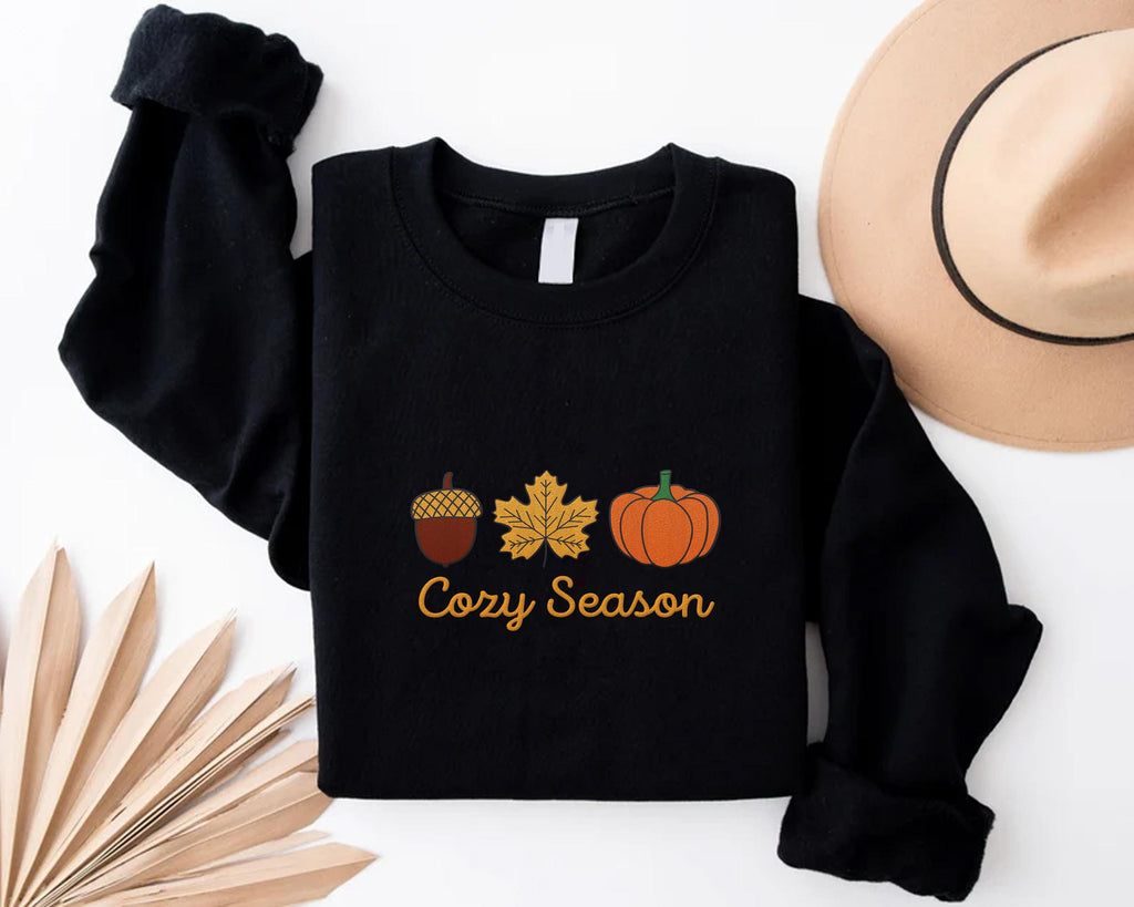 Cozy Season Embroidered Sweatshirt, Falling Leaves Hoodie, Autumn Shirt, Fall Leaves Long Sleeve Shirt, Cozy Fall Aesthetic Gift.