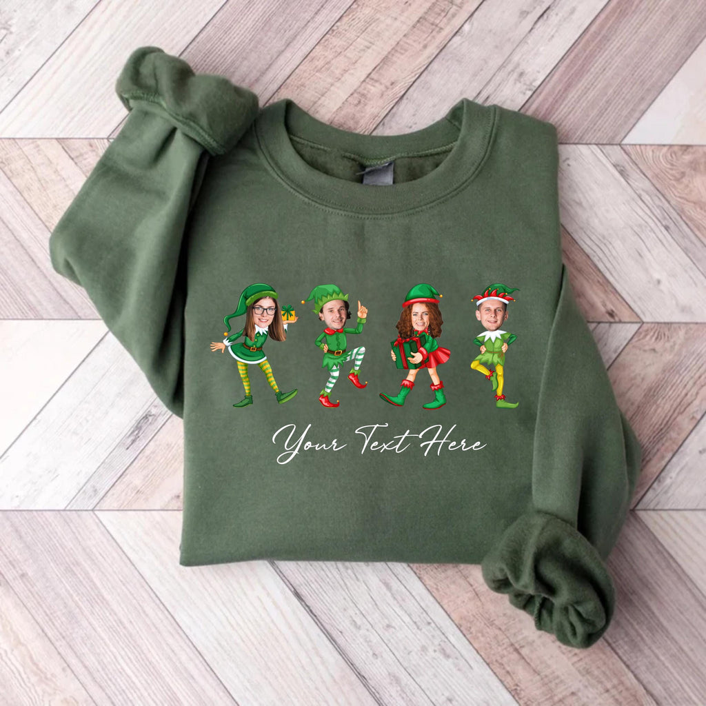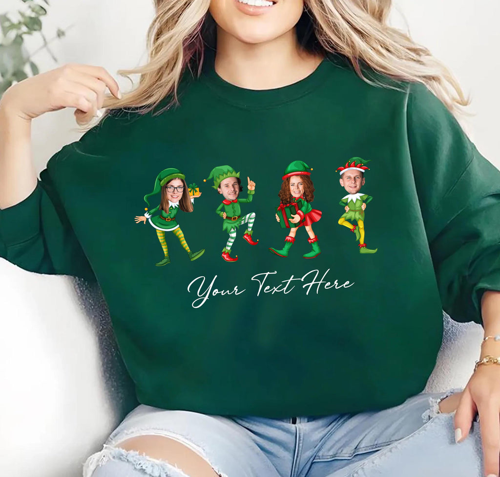 Custom Face Christmas Elf Sweatshirt, Personalized Family Photo Gift Shirt, Christmas Elf Sweatshirt