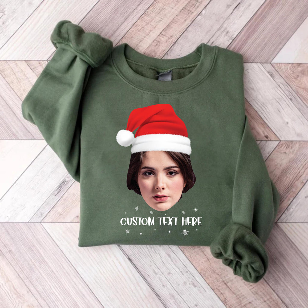 Custom Face Christmas Sweatshirt, Personalized Santa Hat Shirt, Matching Family Gift Sweatshirt