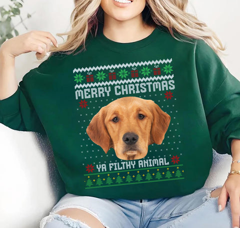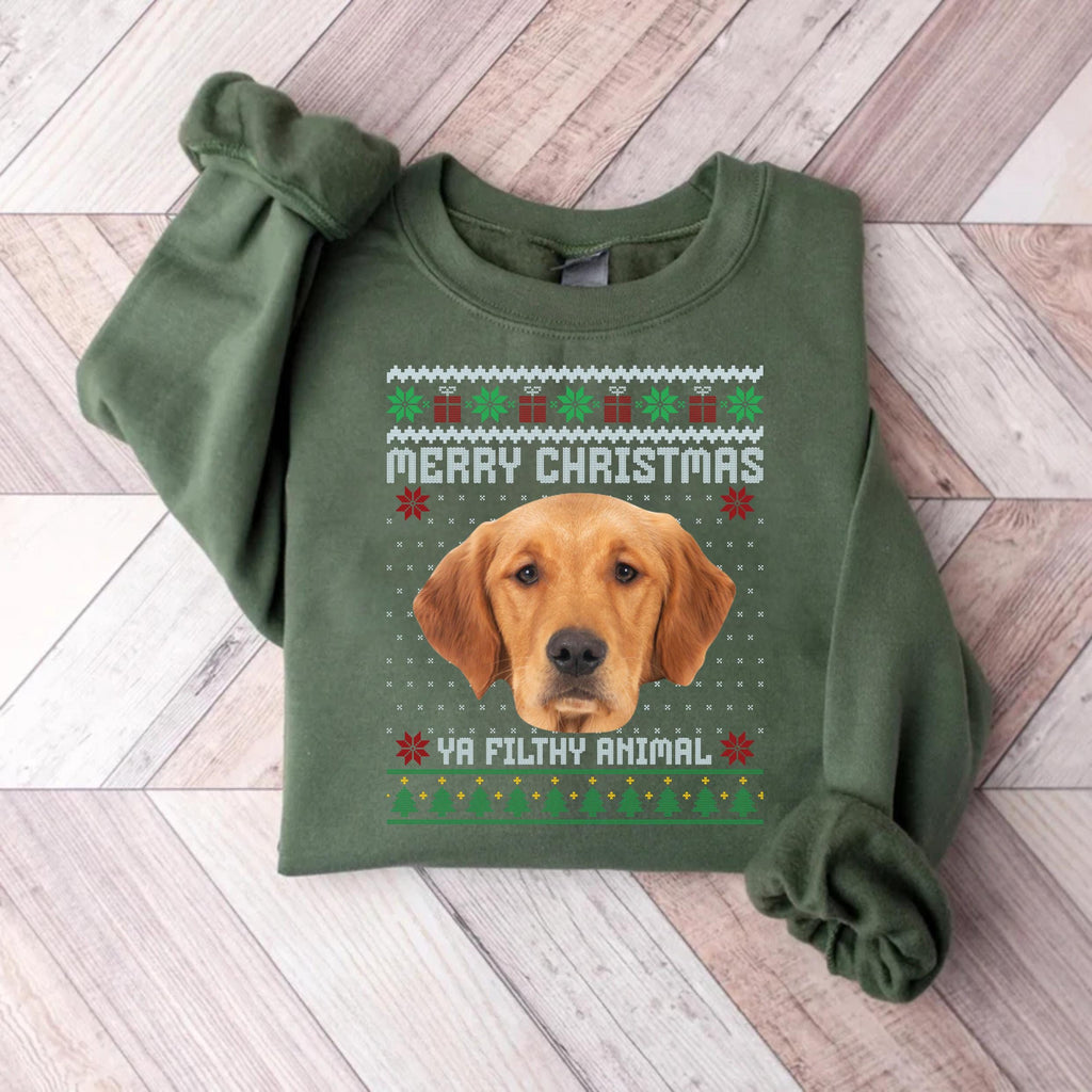 Custom Pet Photo Ugly Christmas Sweatshirt, Funny Animal Lover Gift, Personalized Pet Face Sweatshirt
