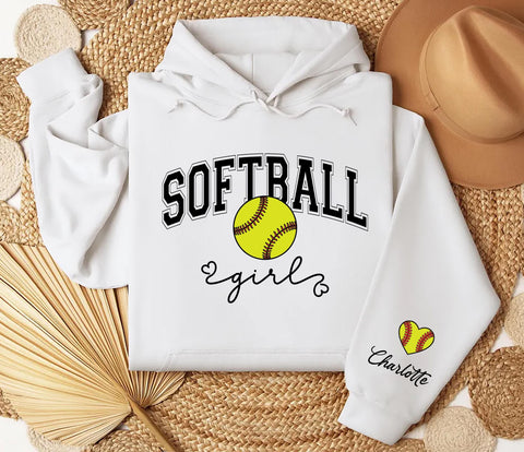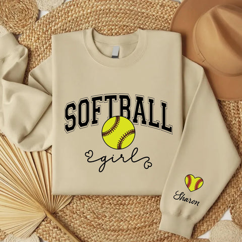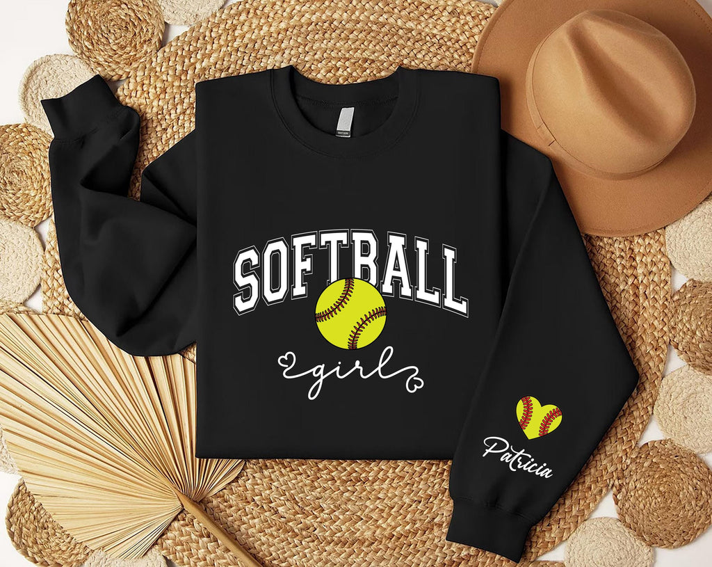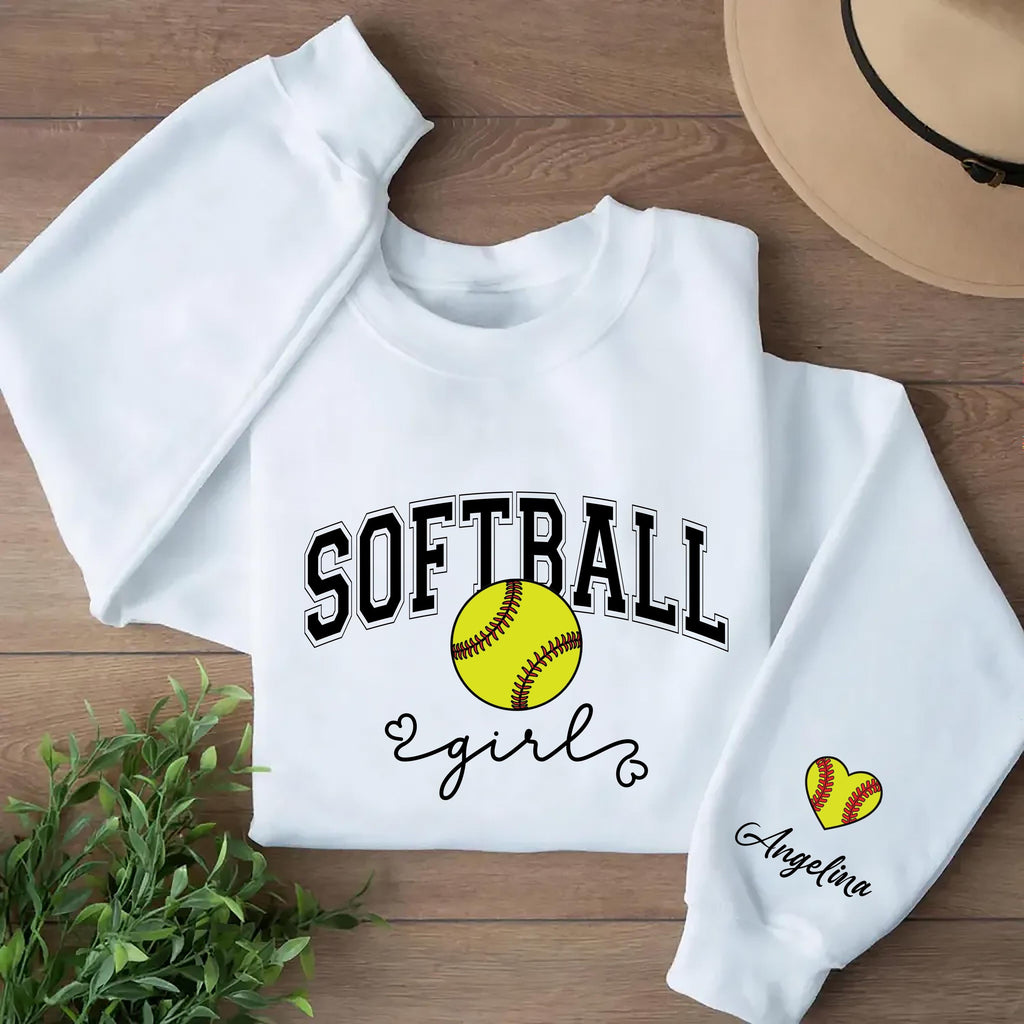 Custom Softball Girl Sweatshirt, Personalized Softball Name Tee, Softball Girl Gift, Softball Player Sweatshirt, Front Sleeve