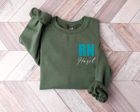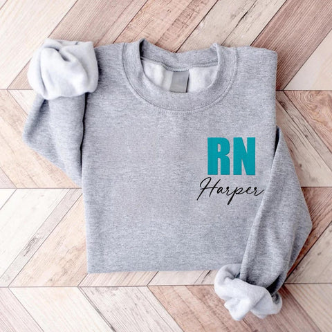 Embroidered Personalized Nurse Sweatshirt, Custom RN Sweatshirt, BSN Sweatshirt, Nursing Student Sweatshirt, LPN Cma Aprn Graduation Gift