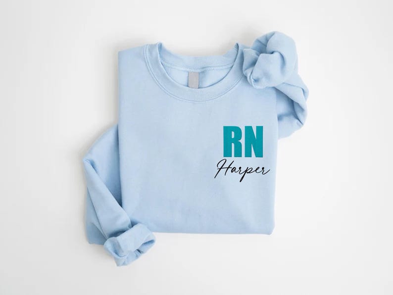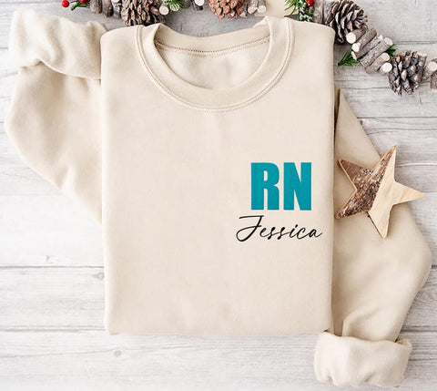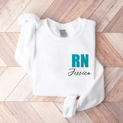 Embroidered Custom Nurse Sweatshirt, RN Sweatshirt, Graduation Nurse Sweatshirt, Gift for New Grad Sweatshirt, Personalized Nursing Gift