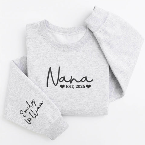 Embroidered Grandma Sweatshirt, Custom Grandma Est Hoodie, Nana Shirt, Gigi Long Sleeve Shirt, Pregnancy Announcement & Mother’s Day Gift.