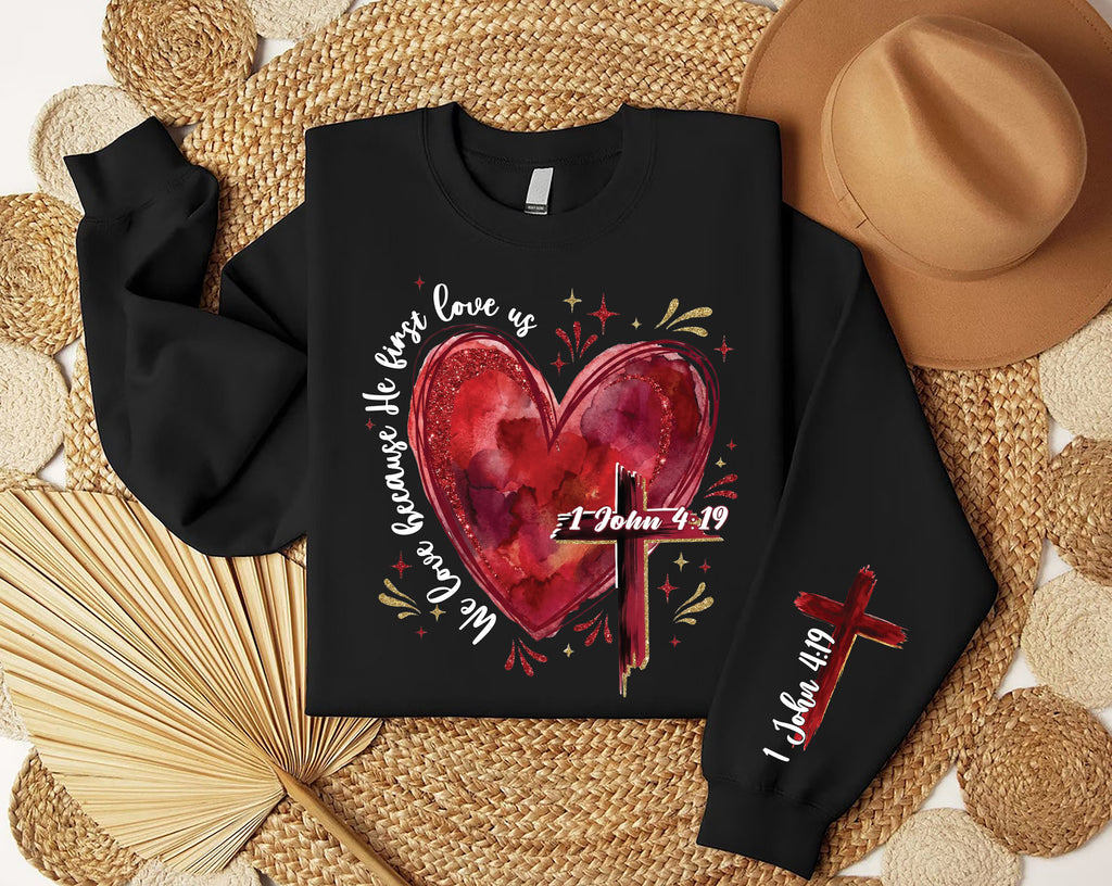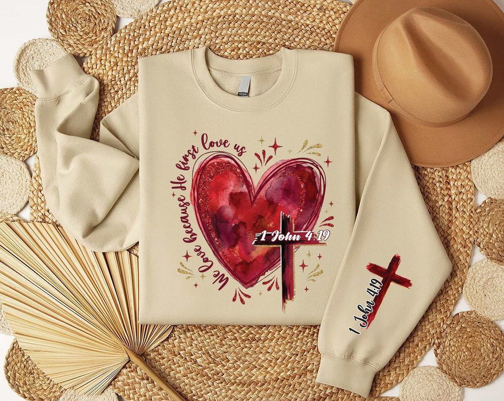📌 Inspiring “We Love Because He First Loved Us” Bible verse design
