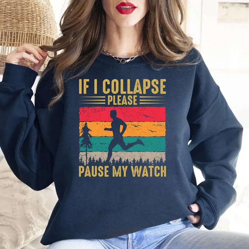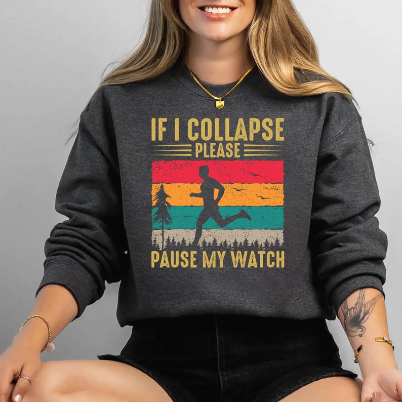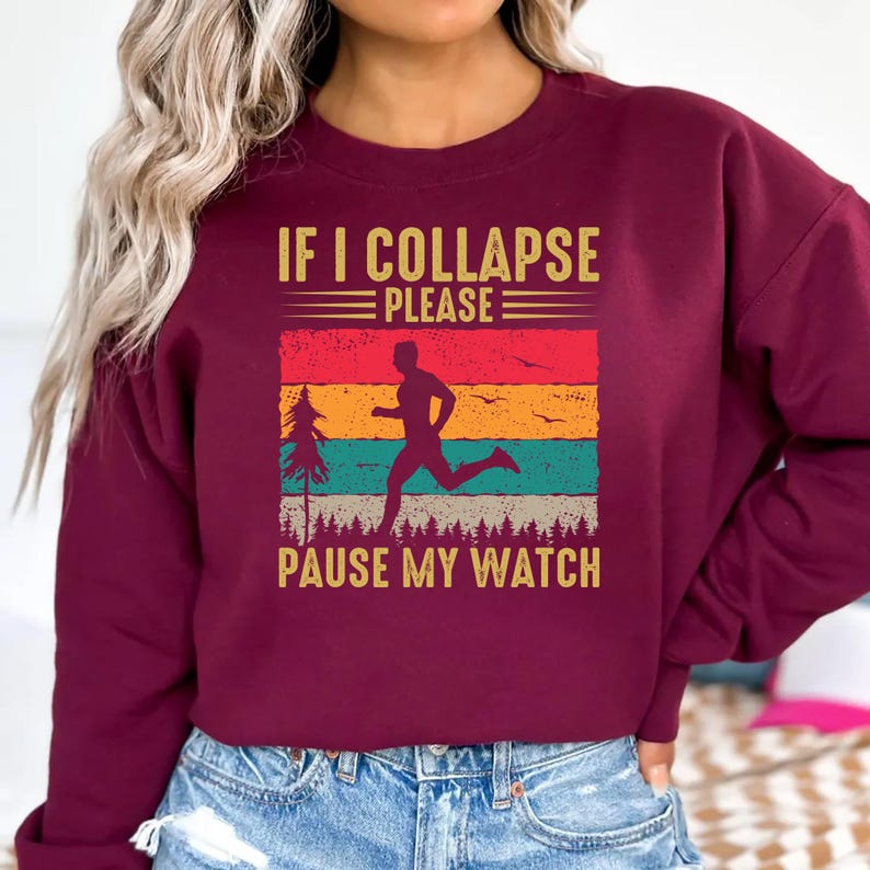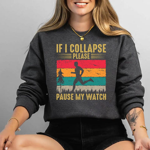 If I Collapse Please Pause My Watch Sweatshirt, Marathon Running Sweatshirt, Funny Runner Sweatshirt, Love Running Sweatshirt, Running Gift