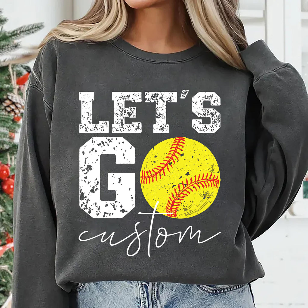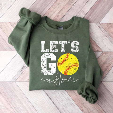 Let’s Go Softball Sweatshirt with Team Name, Custom Softball Mom Shirt, Personalized Softball Spirit Wear Sweatshirt
