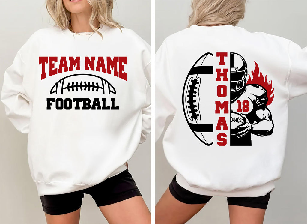 Personalized Football Sweatshirt, Custom Team Name and Number Shirt, Football Mom Sweatshirt, Front Back
