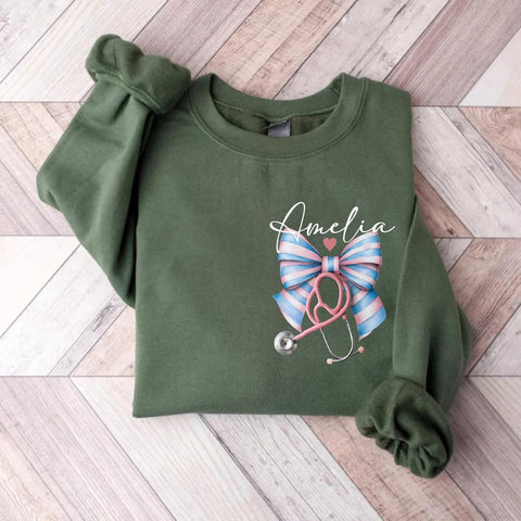 Personalized Labor and Delivery Nurse Sweatshirt, Custom OB Nurse Stethoscope Bow Sweatshirt, L&D Nurse Sweatshirt, Baby Blanket RN Sweatshirt
