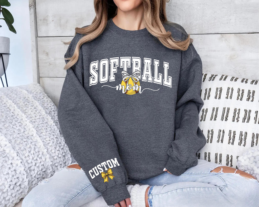 Show your game day pride with this Personalized Softball Mom shirt — customized with name, number, and team details for the ultimate fan look.