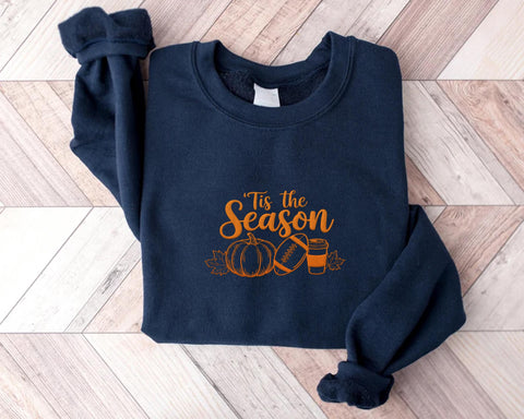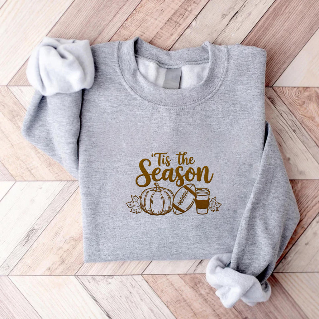 Pumpkin Spice Latte Embroidered Sweatshirt, Tis the Season Hoodie, Fall Shirt, Touchdown Long Sleeve Shirt, Thanksgiving Gift Idea